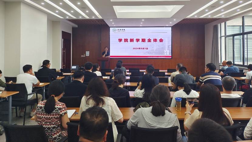 为深入学习贯彻党的二十届三中全会精神,全方位谋划学院发展,为新学期各项工作开好头、起好步,9月1日上午,bwin必赢登录入口在冀衡赛瑞报告厅召开新学期全体教职工大会暨师德首课,会议由学院党委书记吴金明主持。